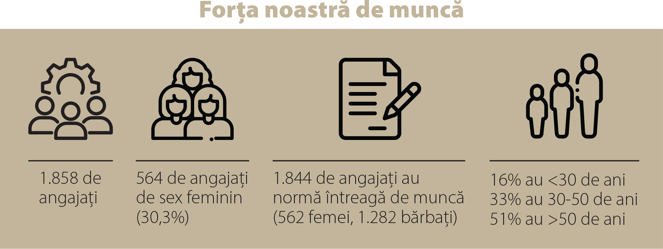 Prevederile antidiscriminare sunt incluse în contractele colective de muncă ale Grupului și, de asemenea, în regulamentele interne în vigoare. Nu au fost raportate incidente de discriminare în 2025.